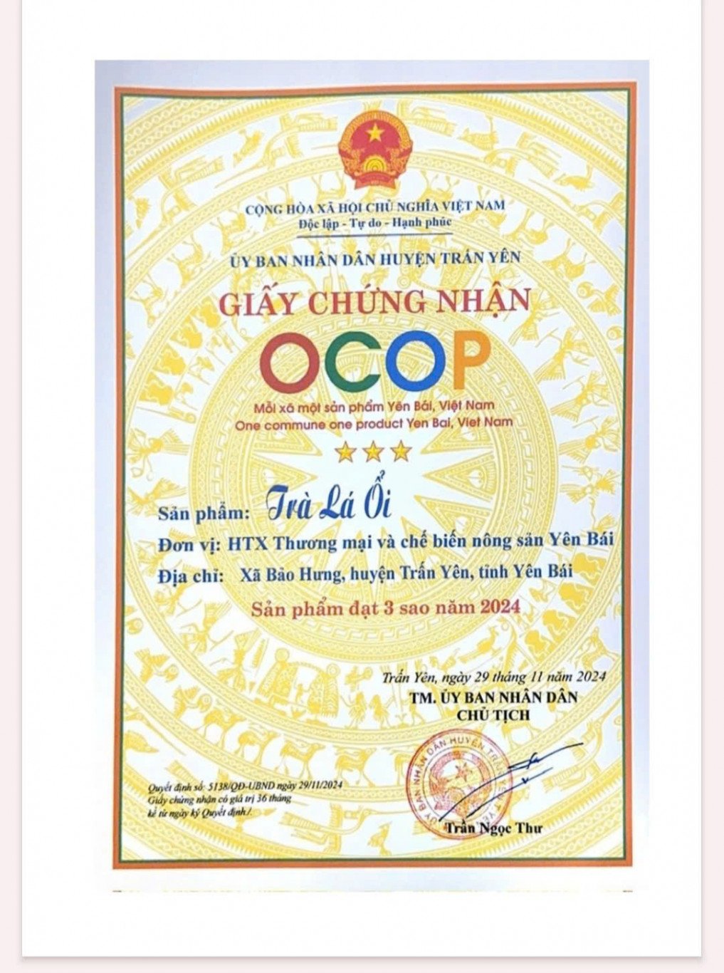 Xuất xứ: xã Bảo Hưng, huyện Trấn Yên, tỉnh Yên bái